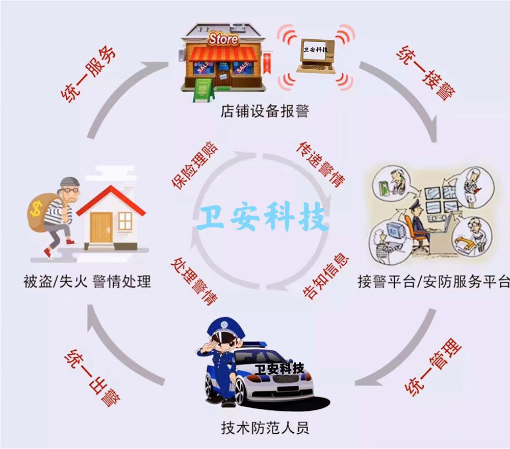 联网报警系统是指运营商在自己的监控室搭建一套报警管理平台,给需要安装防盗报警系统的商户装上联网报警器和探测设备,通过联网报警软件将这些分散的报警器探测到的警情通过各种传输方式传到管理平台,统一由中心平台来处理警情,并由运营商运作系统对警情进行即时的处理,以至于各大商铺免受损失。